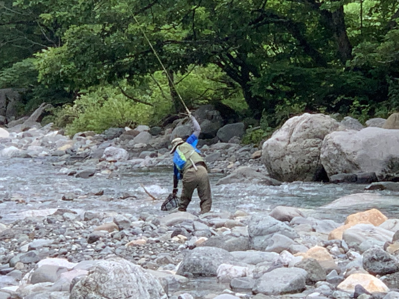 ホームは前日までの雨による増水が心配でしたが、沢からの差し水で濁り(ミネラル)はあるものの私も同僚も軽く2桁を超す釣果となった。