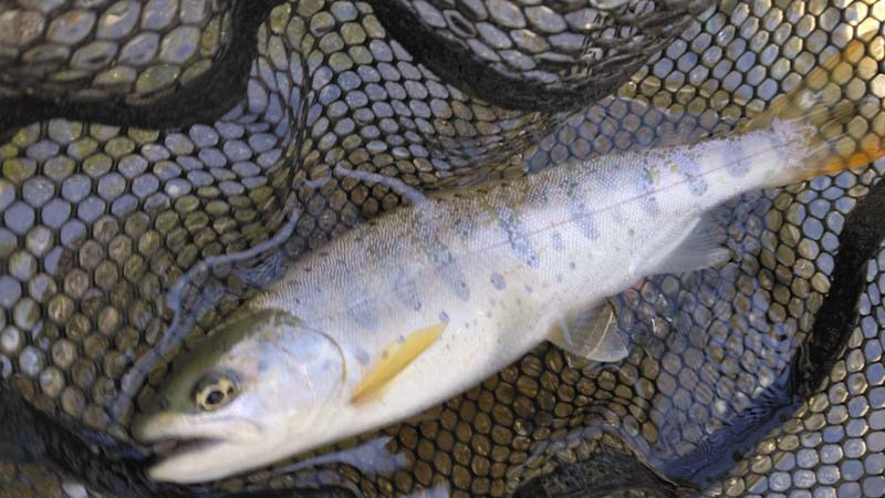 近くに住むオジさんに聞いたら、コロナの影響で漁協では放流を止めたらしい。「魚は居ないし釣れないと思う」とのことだが、運良くか?こんなポイントから出たのは25cm程のアマゴだった。