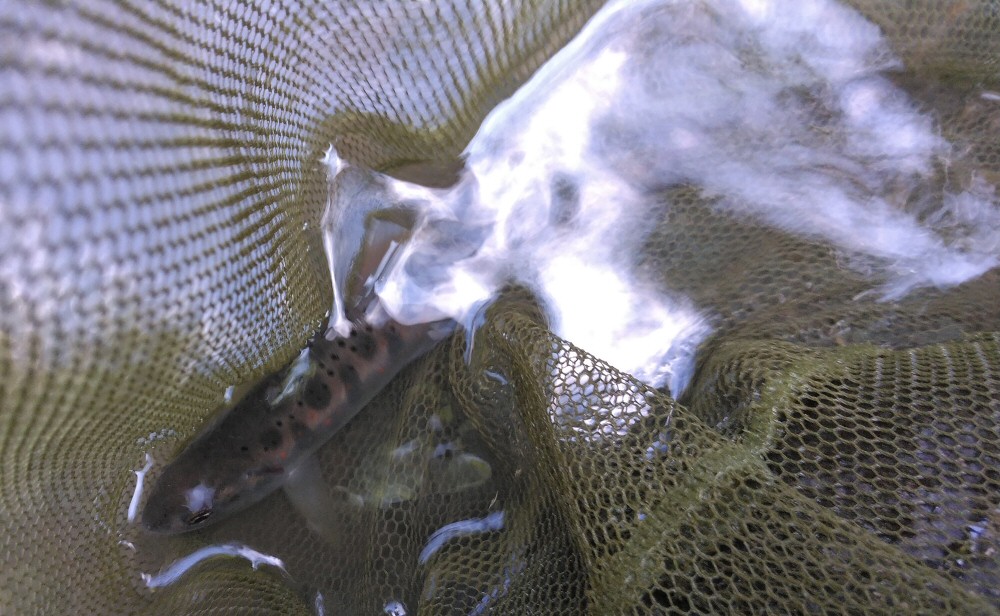 日頃から釣行者が多いようで、釣れたのはちびアマゴ2尾